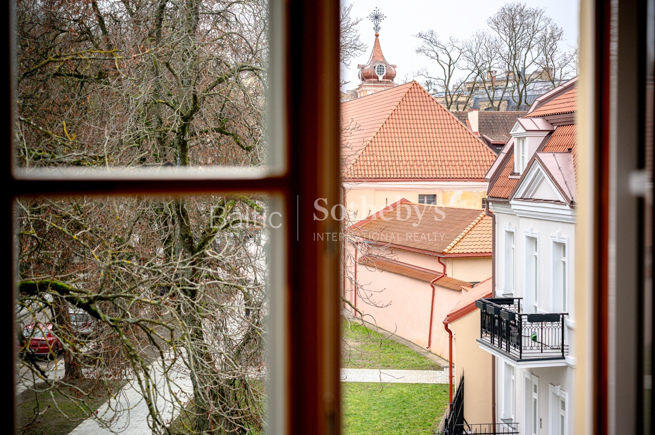 С арендуемыми апартаментами соседствуют самые значимые здания города Вильнюса, а также отель «Гранд Отель Кемпински Вильнюс», величественный вильнюсский Кафедральный собор. Нет, пожалуй, более красивого, более важного места в Старом городе.